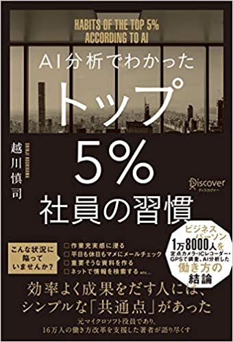 元マイクロソフト役員で現クロスリバー代表の越川慎司氏は、『AI分析でわかった トップ5%社員の習慣』(ディスカヴァー・トゥエンティワン刊)で、5%社員の習慣や行動を明らかにし、無駄を削減し、生産性を向上させるためのポイントを書きつづっている。そんな本書は共感する人が続出、発売直後に大増刷となりベストセラーとなっている。