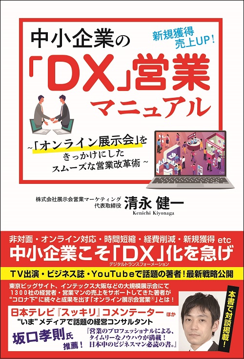 『中小企業のDX営業マニュアル〜オンライン展示会をきっかけにしたスムーズな営業改革〜』(ごま書房新社刊)で展示会営業®コンサルタントの清永健一さんは「自前オンライン展示会」による営業の「DX」化を提唱している。