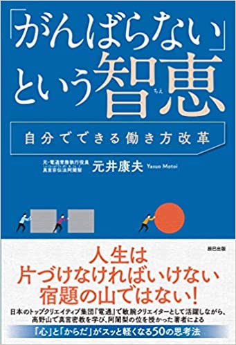 電通でクリエイティブディレクターとして活躍しながら高野山で真言密教を学び、阿闍梨の位を授かるという異色の経歴を持つ元井康夫氏は、著書『「がんばらない」という智恵~自分でできる働き方改革~』(辰巳出版刊)で"「がんばる」より「がんばらない」ほうがうまくいく"としている。