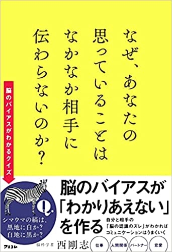 日本の脳科学者20人のひとりである西剛志さんの著書『なぜ、あなたの思っていることはなかなか相手に伝わらないのか?』(アスコム刊)では、この「脳のバイアス」にクローズアップし、シマウマクイズなど、気づきを与えるクイズと共に紹介します。最新の脳科学研究と自身の体験、さらに脳科学データを基にしたコンサルティング経験がもとになっているので、わかりやすく実践的な形で「脳のバイアス」を学べます。