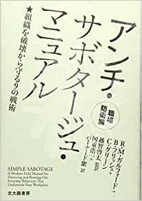 『アンチ・サボタージュ・マニュアル 職場防衛篇:組織を破壊から守る9の戦術』(北大路書房刊)によると、このマニュアルは、組織人としてごく普通に行動しているように見え、誰にも感知されることなく、自分の組織を破壊するためのノウハウである。