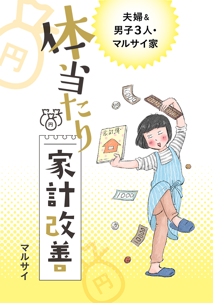 同書は、家計管理が苦手な作者・マルサイさんの一家が家計改善に挑むエッセイ漫画。どこの家庭でも出来そうな簡単なテクニックを駆使して、ゆるくライトな節約にチャレンジする様子を描く。
