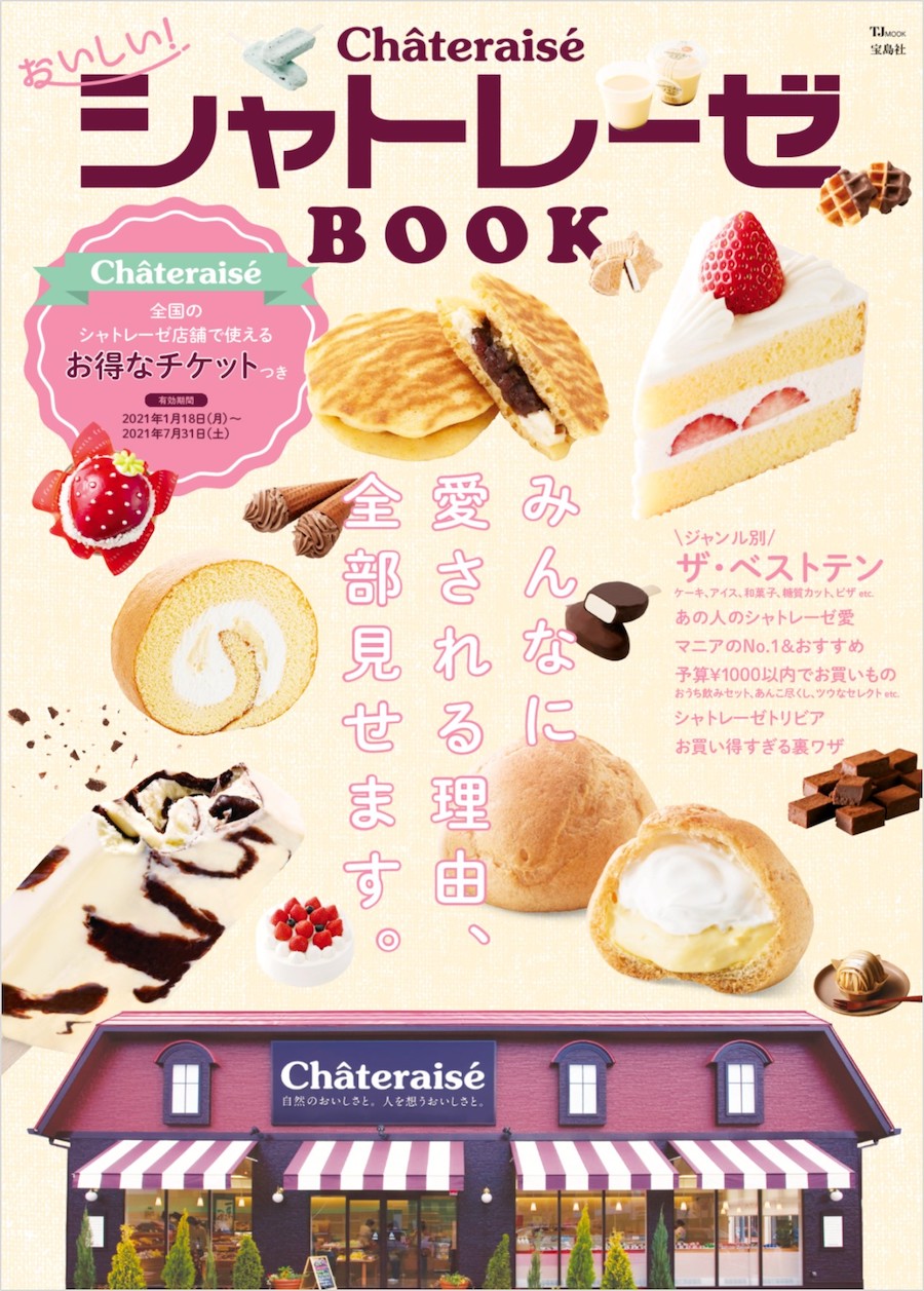 著名人にもファンの多いお菓子メーカー、株式会社シャトレーゼのオフィシャルブック「おいしい!シャトレーゼBOOK」(宝島社)が2021年1月18日に発売された。シャトレーゼは、国内556店舗、海外8ヶ国・地域90店舗に展開し、約400種のお菓子を発売している。