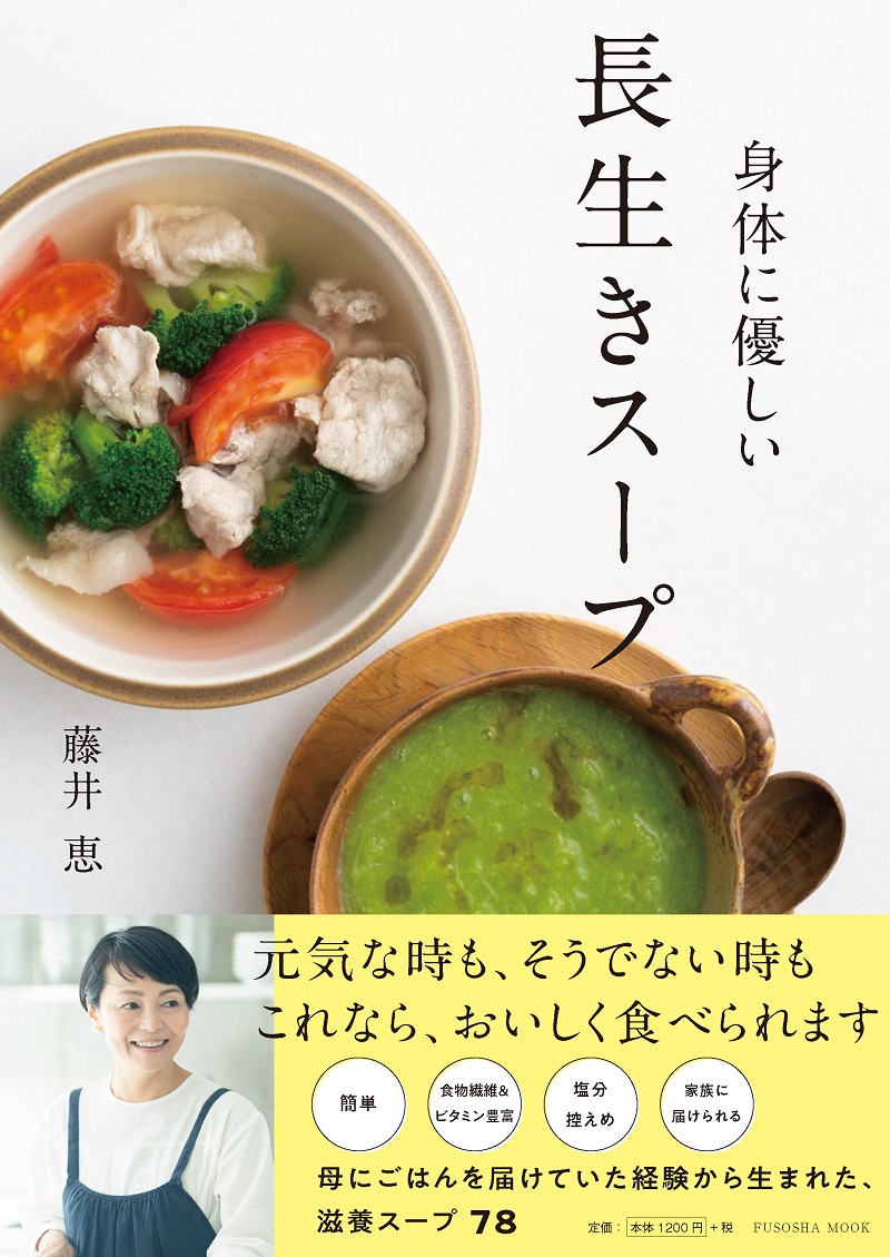 本書『身体に優しい長生きスープ』(扶桑社ムック)は、人気料理家・藤井恵さんが「母にごはんを届けていた経験から生まれた、滋養スープ78」のレシピを紹介した一冊。1月18日発売。