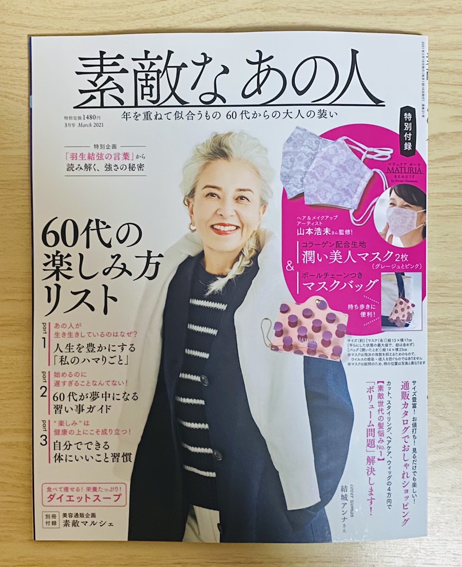 「素敵なあの人 2021年 3月号」(宝島社)の特別付録に関しては、記事「コラーゲン配合の横顔美人マスクが付録!?」を参照。