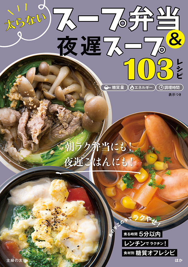 リモートワーク中の在宅ランチやお弁当、夜遅く帰った日の夕飯に困った時に役立つレシピ集が、2021年1月16日に主婦の友社から発売された『太らないスープ弁当&夜遅スープ 103レシピ』だ。
