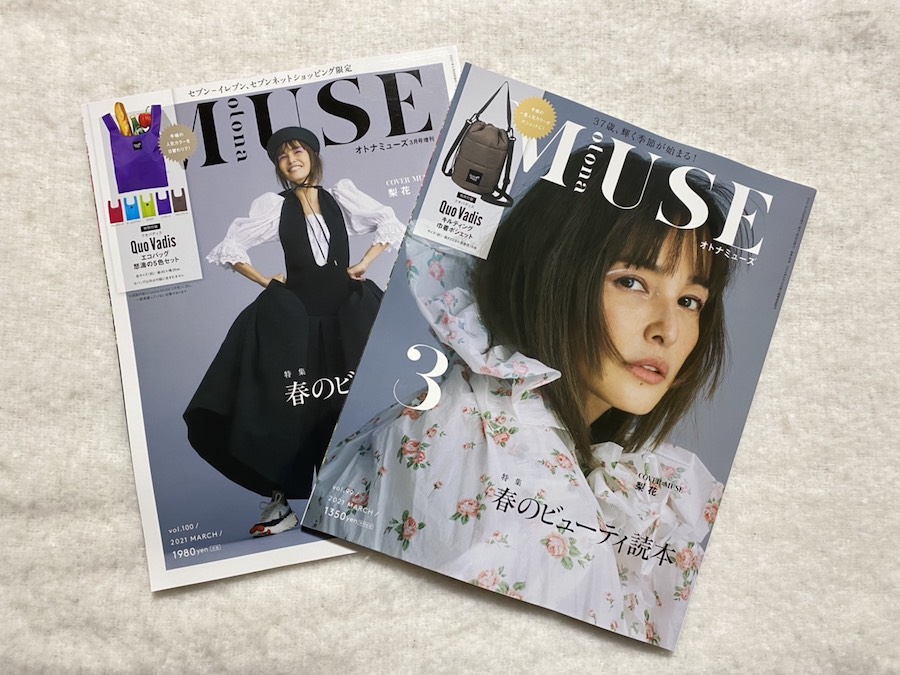 そんなあなたにオススメしたいのは、こちら。セブン-イレブン限定発売の「オトナミューズ 2021年3月号 増刊」(宝島社)の特別付録「Quo Vadis(クオバディス) エコバッグ5色セット」だ。