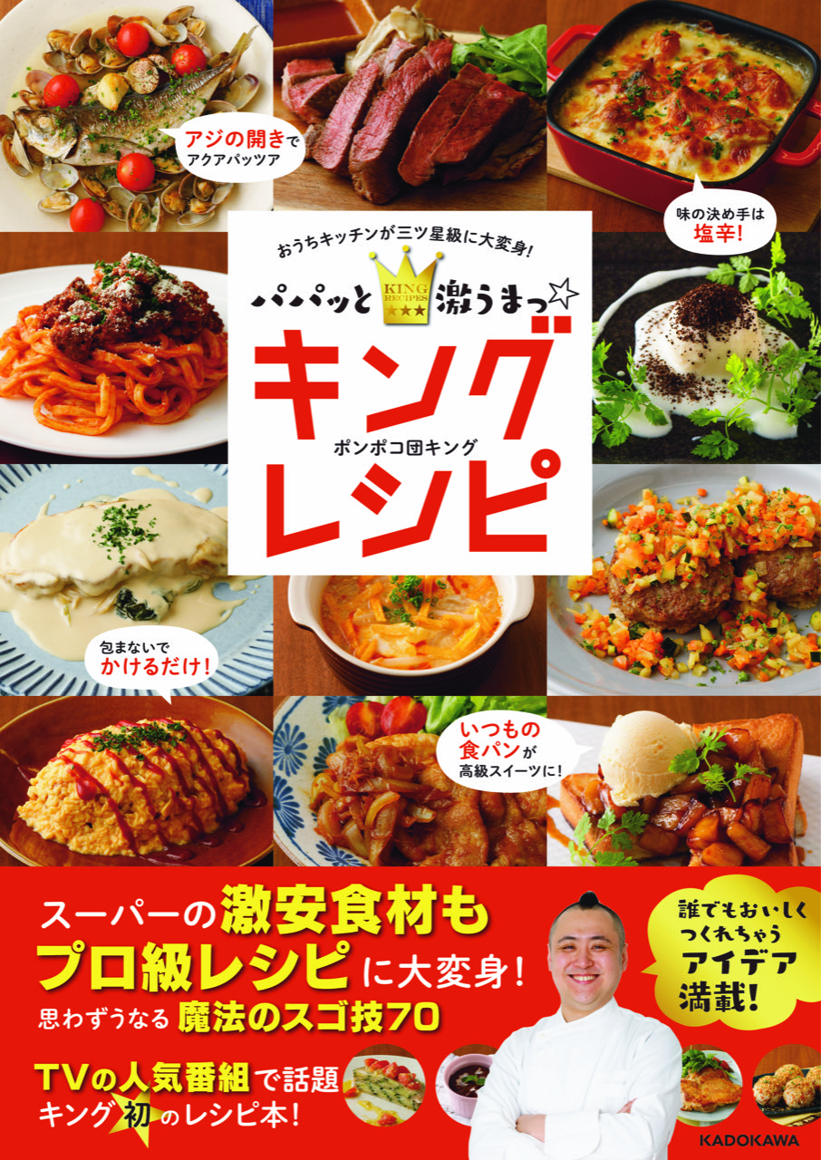テレビ番組で「料理の腕前がすごすぎる」と話題になり、注目を集めているお笑いトリオ「ポンポコ団」のキングさんが2021年1月27日に初のレシピ本を上梓した。