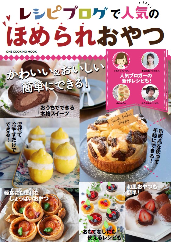 2021年2月4日に発売された『レシピブログで人気のほめられおやつ』(ワン・パブリッシング)は、見た目はプロ並み、でも作り方は簡単で、初心者でも挑戦できるおやつレシピ集。日本最大級の料理ブログのポータルサイト「レシピブログ」の人気フーディストのレシピが掲載されている。