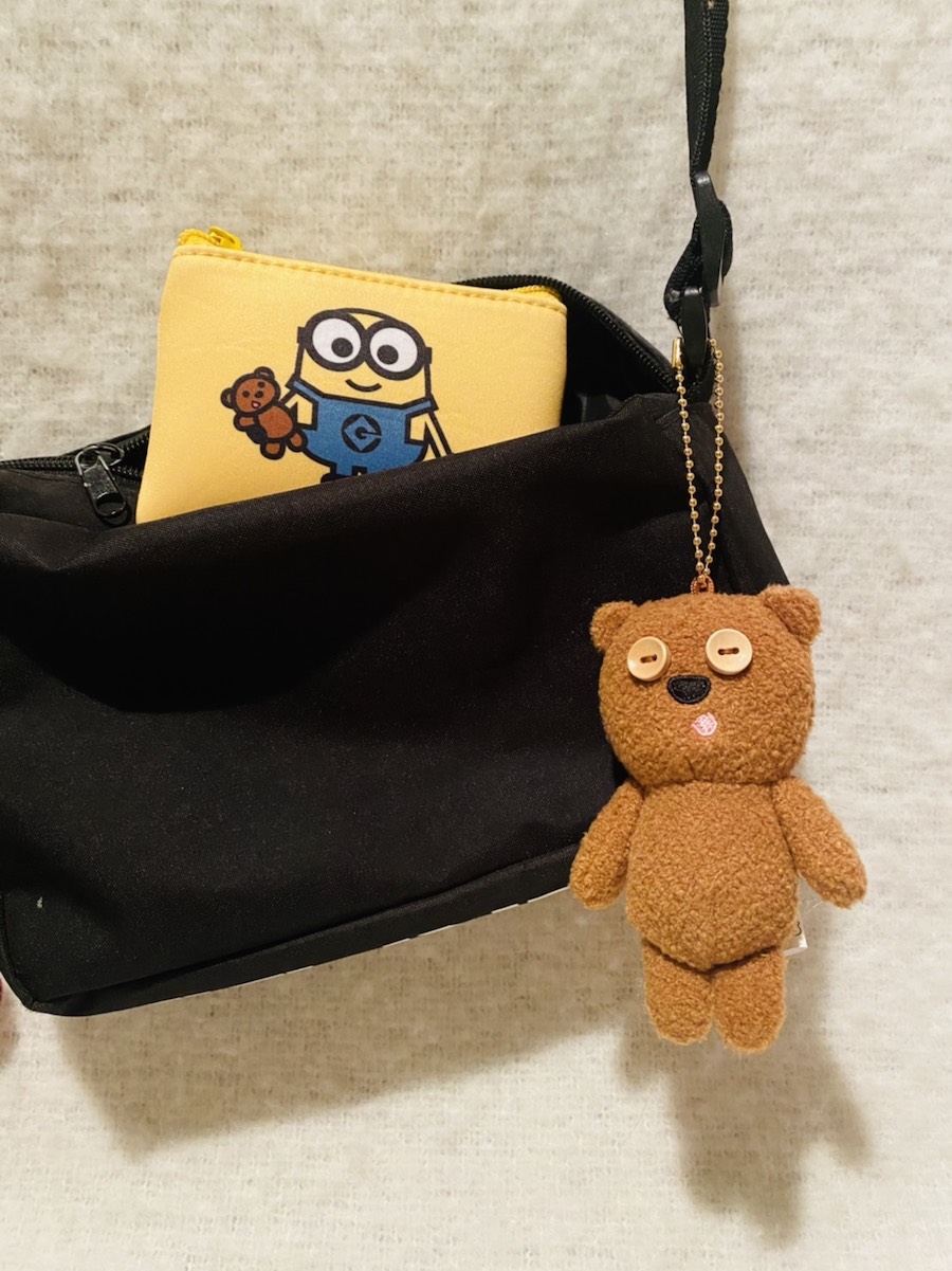 バッグにつけたい「ティムのミニチャーム」は、ふわふわの生地で、どんな素材のバッグにも馴染んでくれる。特に、小さめのホワイトカラーのバッグや、黒リュックとの相性は抜群だ。