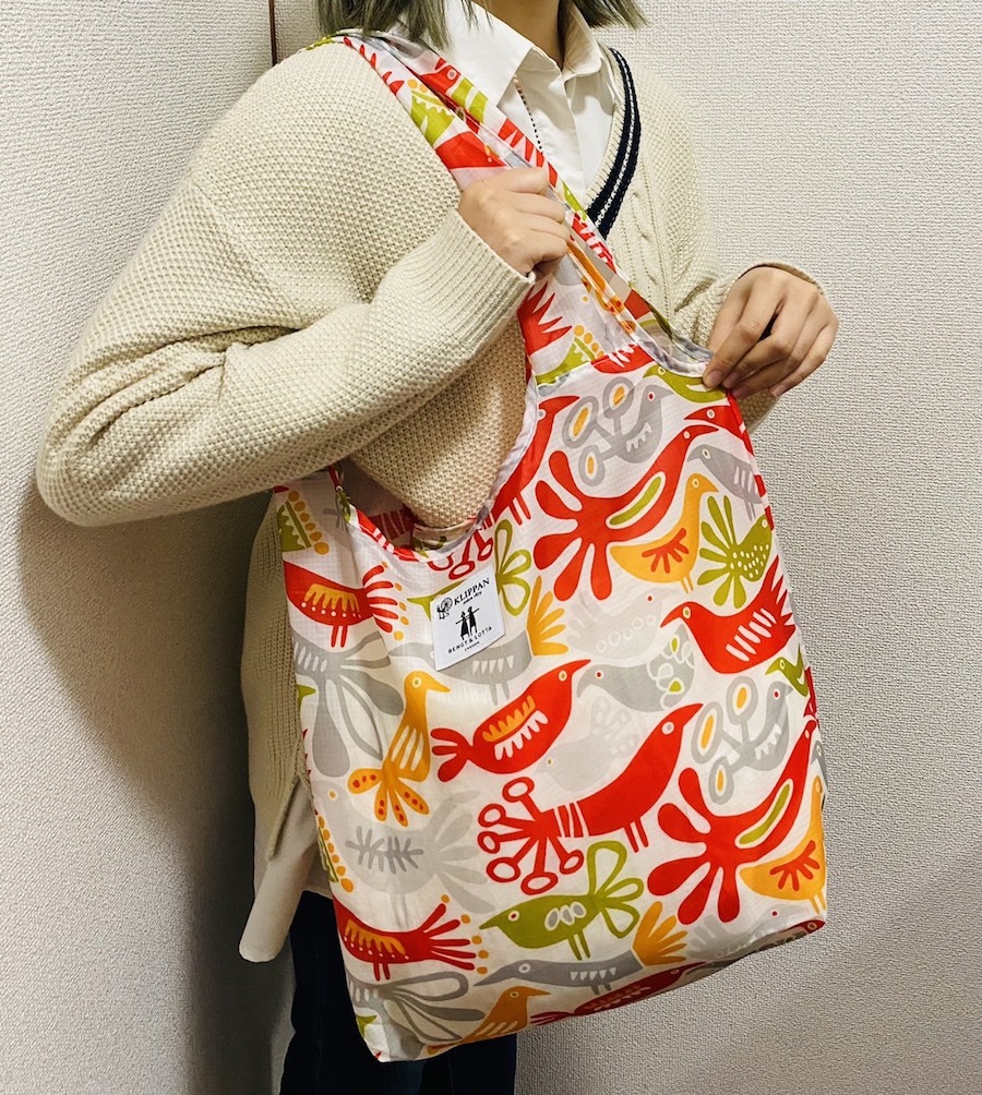 鳥たちがハーモニーを奏でる明るい模様が可愛いクリッパンのエコバッグ。お弁当や飲み物を詰めて、春のピクニックにでかけたい。