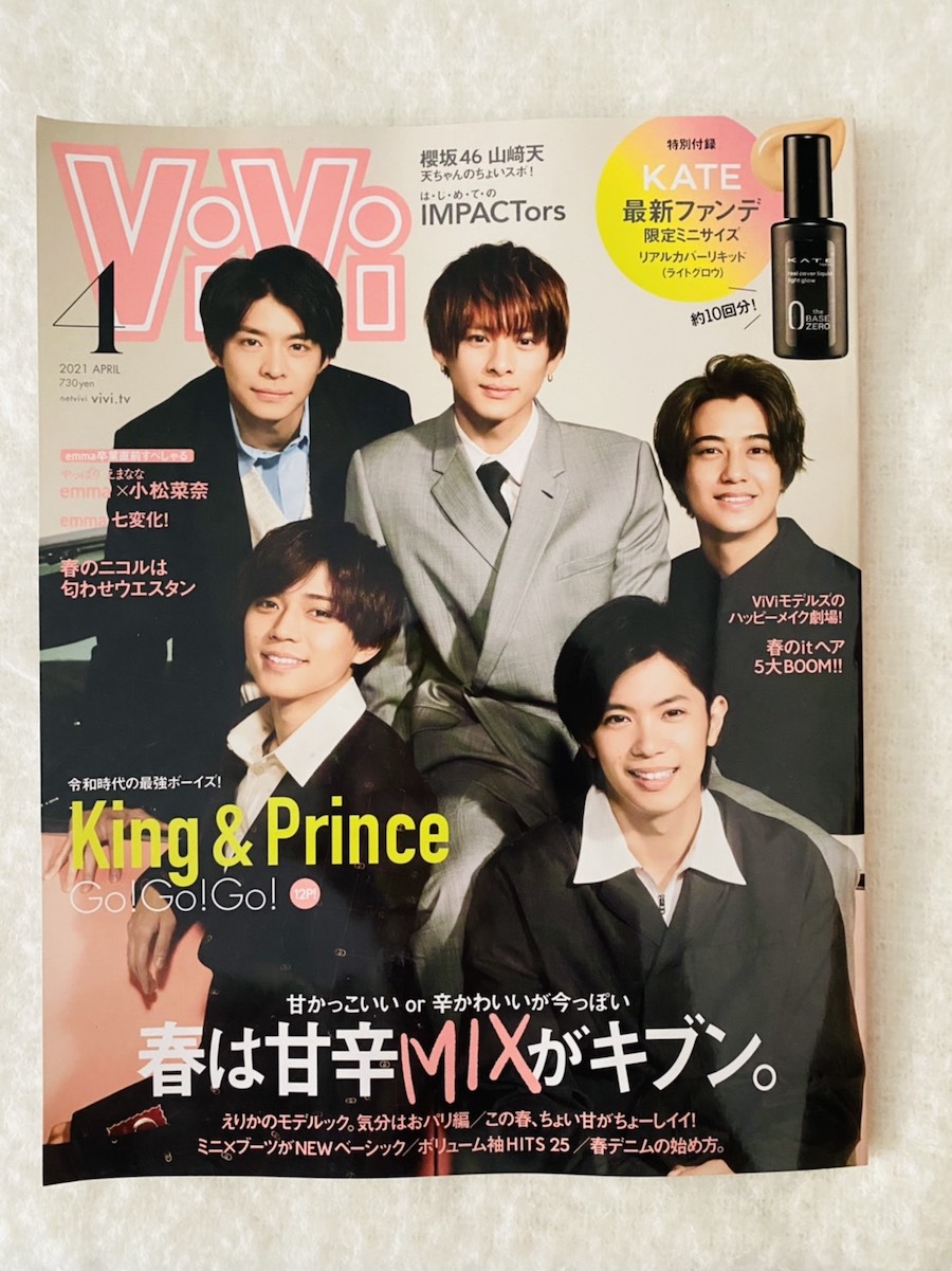 誌面では、「ViVi 2021年4月号」(講談社)の表紙を飾るKing&Princeの12ページにわたる特集に注目。キラキラとしながらも意外と戦略的。かと思うと、天然なメンバーが多い。愛され続ける令和の最強ジャニーズ、King&Princeの活躍から目が離せない。