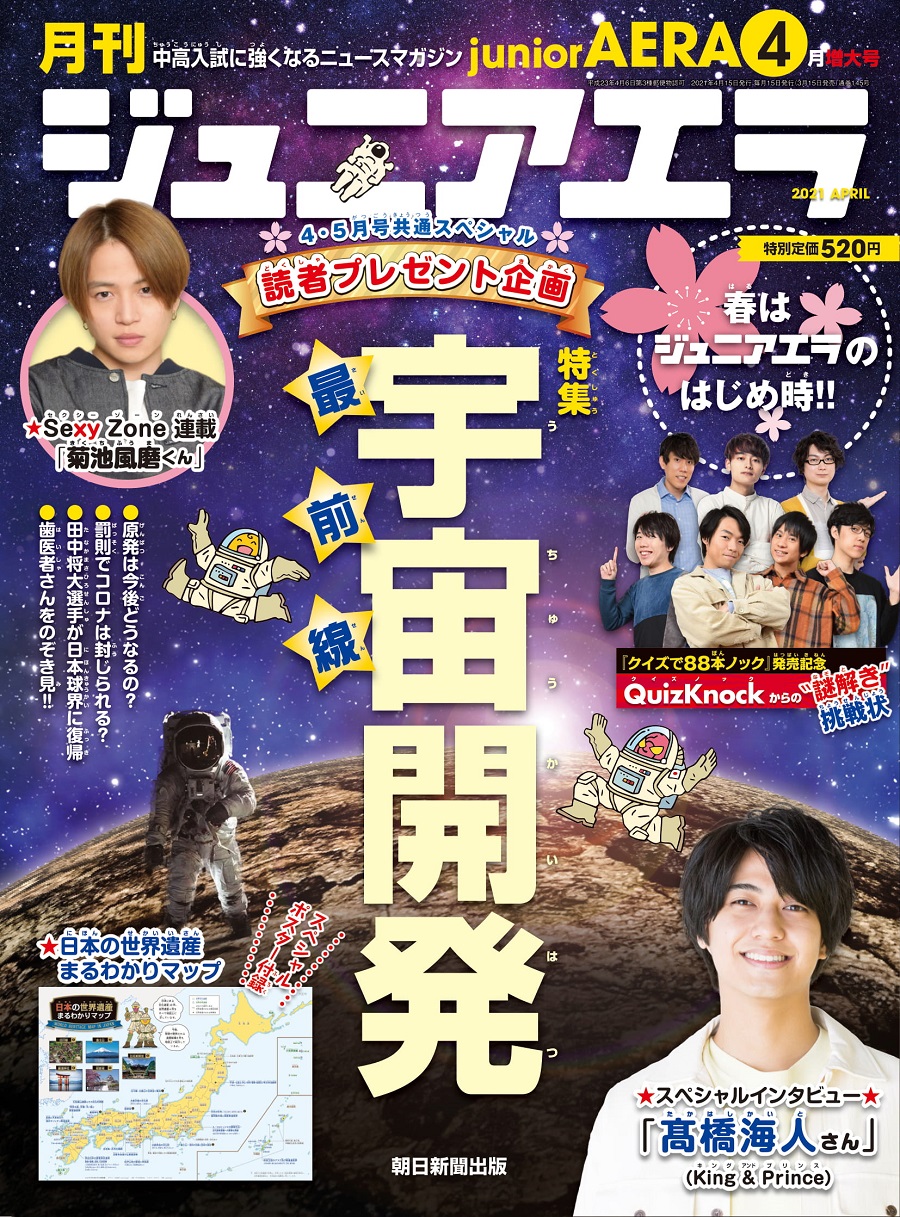 King & Princeの髙橋海人さんが、3月15日発売の月刊誌「ジュニアエラ」4月号(朝日新聞出版)のスペシャルインタビューに登場した。