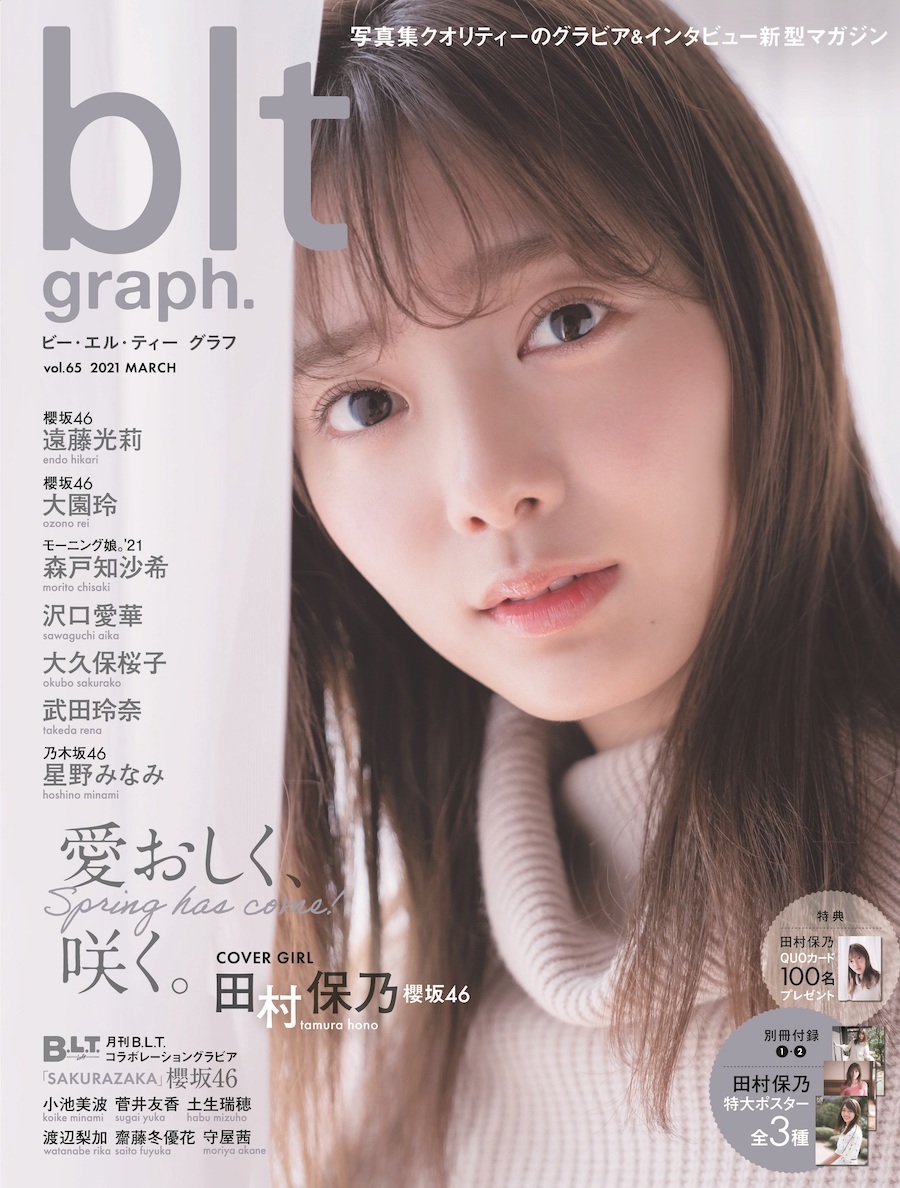 櫻坂46の田村保乃さんが表紙を飾っている「blt graph.vol.65」(東京ニュース通信社)が3月26日に発売された。「欅坂46」から「櫻坂46」と名前が変わってから2枚目のシングルとなる「BAN」が4月14日にリリースされる。