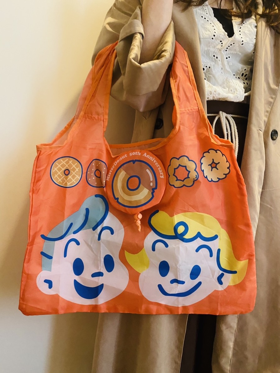 普段のお買い物にはもちろん、ミスドのテイクアウト用ボックスが縦に2つぴったり入るビックサイズ。ドーナツを大人買いしたとき、このバッグに入れて持ち帰れば、注目を集めること間違いなしだ。