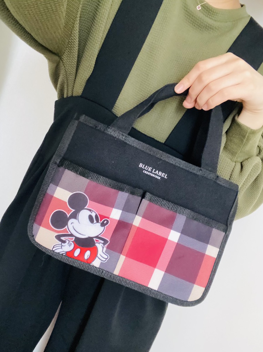 今回のイチ推しは、ミッキーマウスのモチーフが印象的な赤と黒のギンガムチェックが可愛い「ブルーレーベル・クレストブリッジ ミッキーマウスデザインの8ポケットインテリアバッグ」である。