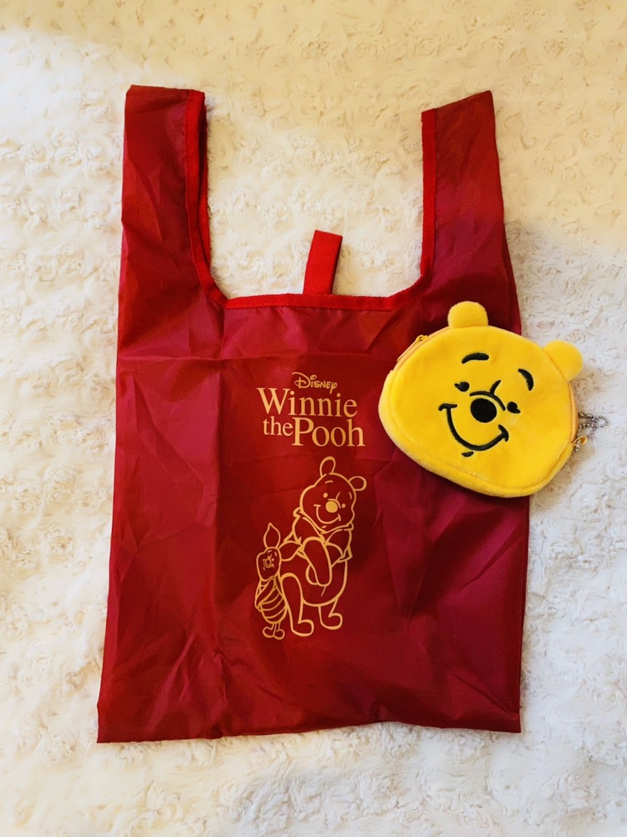 プーさんがいつも着ているあの服を連想させる真っ赤なエコバッグに、プーさんとピグレッドがデザインされている。