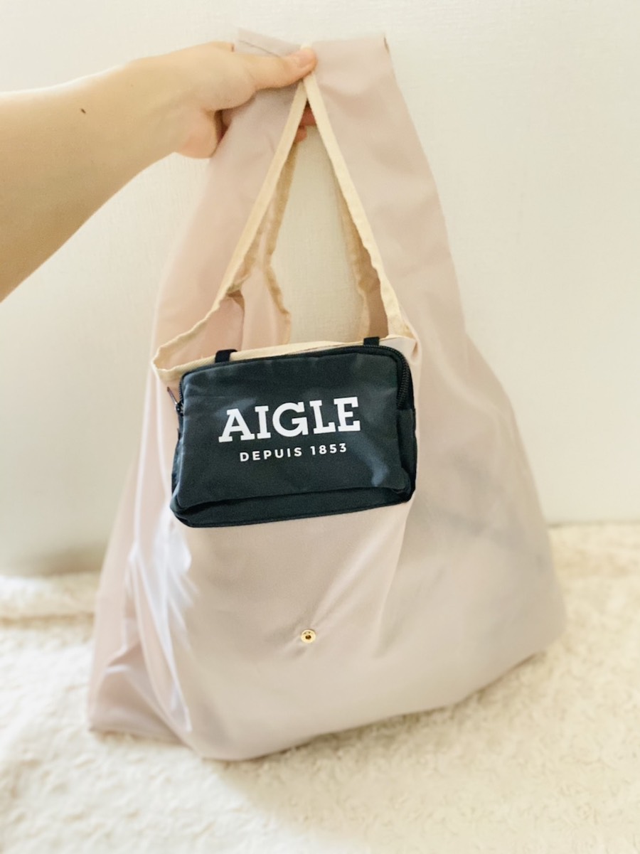 今年らしいくすみピンクが特徴的な「AIGLE変身お買い物バッグ」を持って、買い物や散歩を楽しもう。
