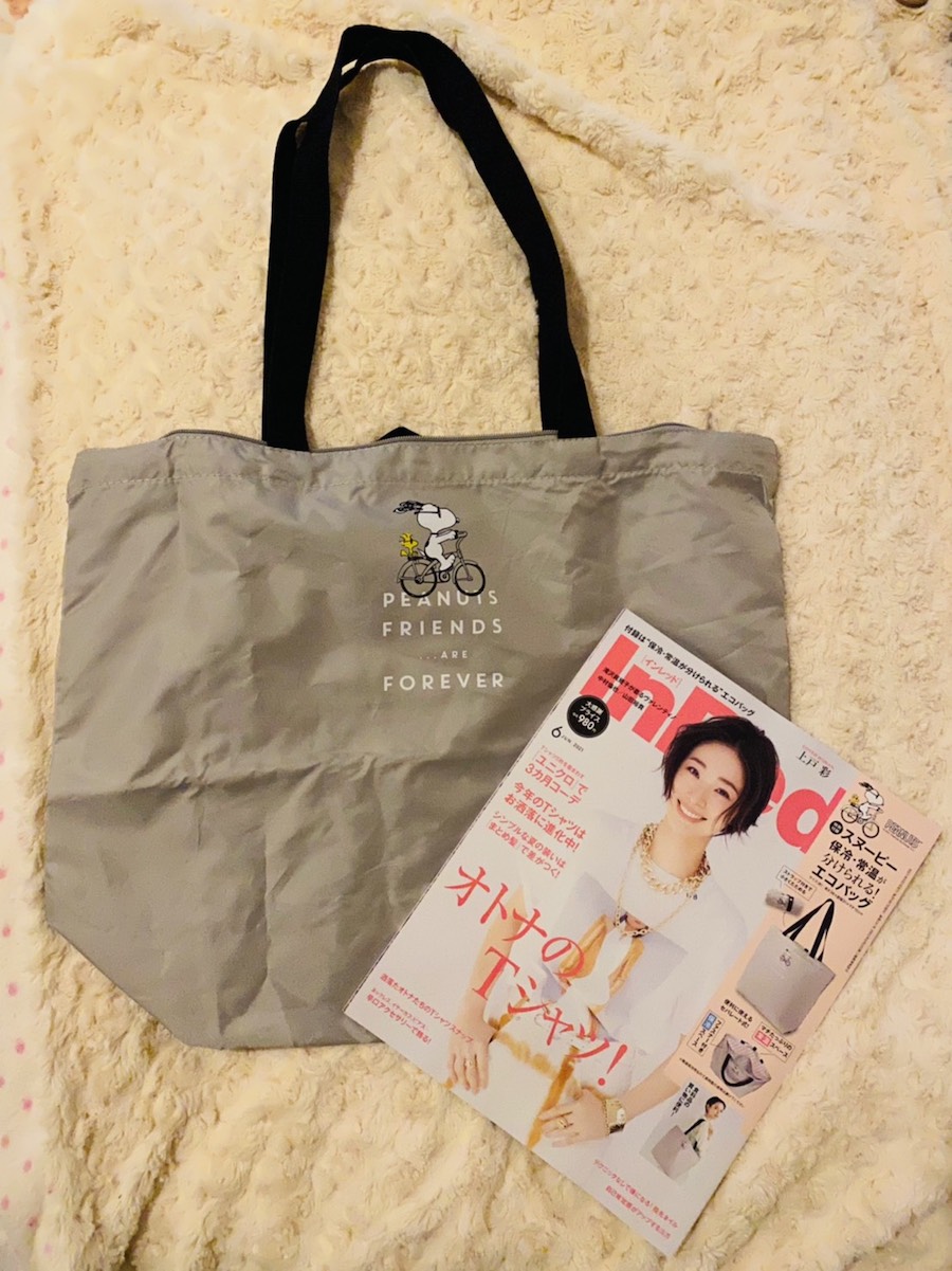 そこで今回オススメしたいのは、サングラスをかけて颯爽と自転車をこぐスヌーピーが愛らしい「スヌーピー 保冷・常温が分けられる!エコバッグ」。「InRed 2021年6月号」(宝島社)の特別付録である。