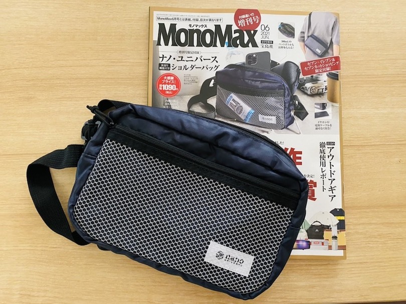 コンパクトなのにしっかり収納できるナノ・ユニバースの欲張り機能付きショルダーバッグが「MonoMax2021年6月号増刊」(宝島社)の付録に登場した。