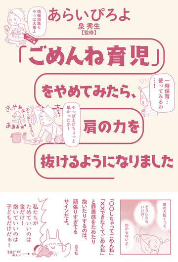 つい、できないことを数えては、「〇〇しちゃってごめんね」「〇〇できなくてごめんね」と罪悪感にかられる頑張り屋さんのママにおすすめの本が、あらいぴろよさんの『「ごめんね育児」をやめてみたら、肩の力を抜けるようになりました』(光文社)だ。
