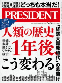 5月28日発売の「プレジデント」(2021年6月18日号)は、コロナ後は「経済大爆発時代」の幕開けだとして、1年後の日本経済、世界情勢を予測する特集を組んでいる。