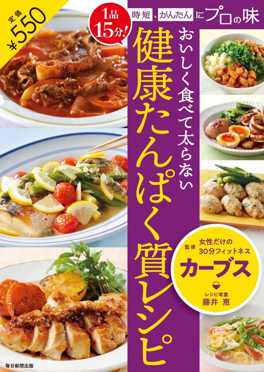そのカーブスが監修した『1品15分! 時短、かんたんにプロの味 おいしく食べて太らない 健康たんぱく質レシピ』(毎日新聞出版社)が発売された。