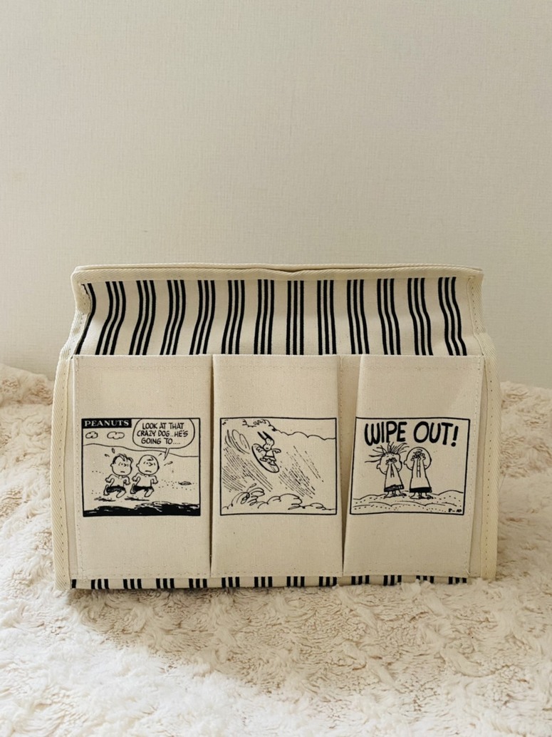シンプルなデザインでどんなインテリアとの相性の良い「スヌーピー&フレンズ 便利な6ポケット付き ティッシュボックスケース」。毎日の収納に使ってみてはいかがだろうか。