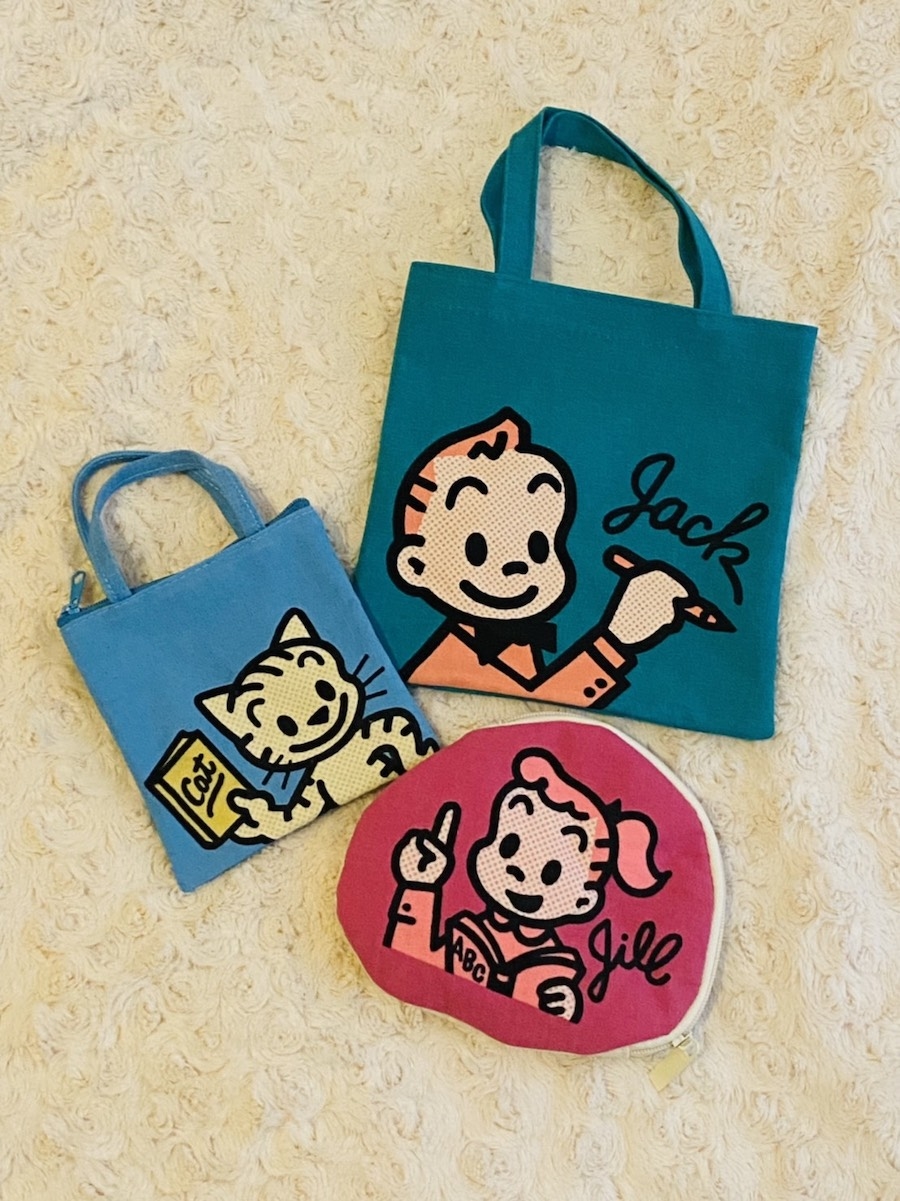 ジャックのミニトートのサイズは、18×18.5cm。ハンカチやイヤホンを入れたり、手帳を入れたりするのにちょうど良いサイズである。他にも、スマホとハンカチだけ入れて、近くのコンビニに行くときにも使えそう。