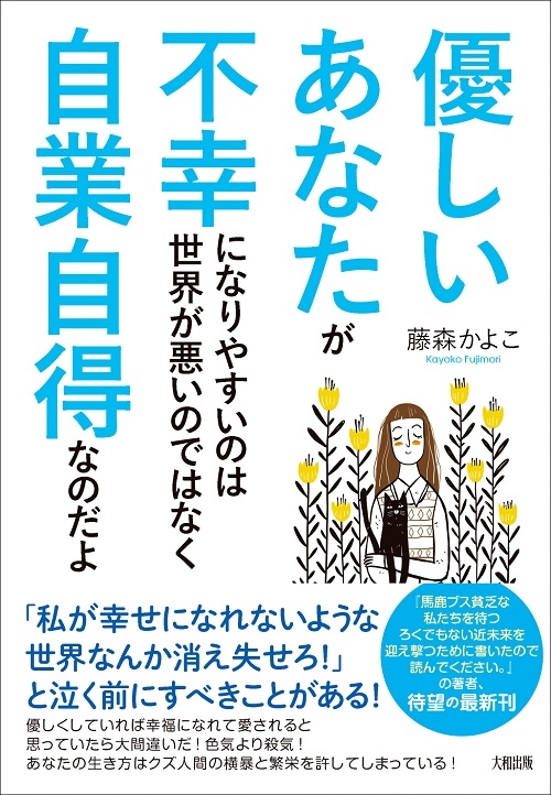 藤森かよこさんの著書、『優しいあなたが不幸になりやすいのは世界が悪いのではなく自業自得なのだよ』(大和出版)は、仕事や恋愛、家族、友人関係において、「良かれと思ってしたことが裏目に出る」「優しくしたのに裏切られる」「舐められやすい」といった経験を持つ人が、なぜ不幸になるのかを徹底的に分析し、不幸にならずに済む方法を論理的かつ具体的にアドバイスしている。