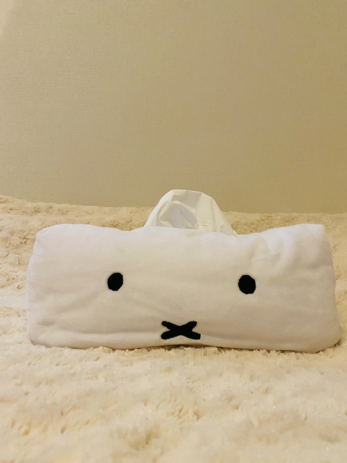 ミッフィーの顔が全面にデザインされた本アイテム。可愛らしい耳の代わりに、ティッシュが取り出せるようになっているのがポイントだ。ぬいぐるみのようなふわふわな触り心地もかわいい。