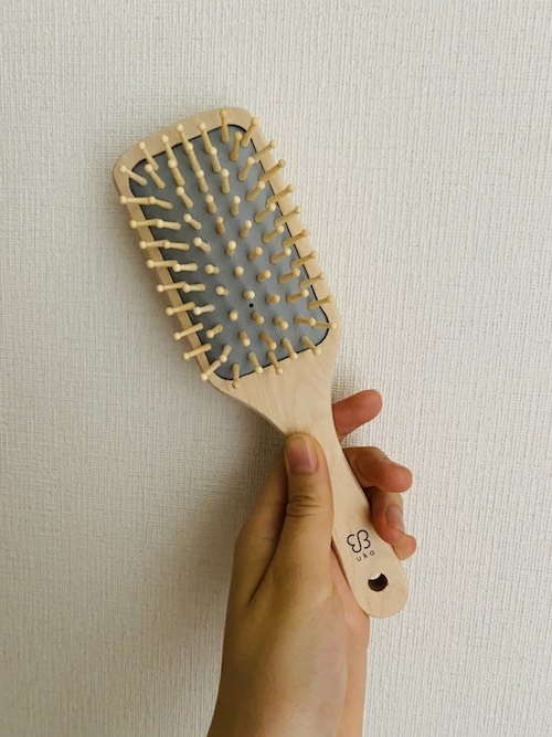 本アイテムは、木の持ち手と竹製のピンを使った天然素材のブラシなので、地肌に優しい頭皮ケアができる。人気ビューティブランド「UHA」のロゴがおしゃれ。フックにかけられ、収納しやいので、ブラシが迷子になる心配もない。