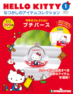 創刊号の付録は、1975年にハローキティのデビューアイテムとして発売された「小銭入れのプチパース」を再現したもの。