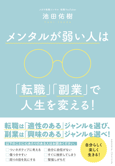 7月27日に発売された『メンタルが弱い人は「転職」「副業」で人生を変える!』(クロスメディアグループ・パブリッシング)の著者で、転職コンサルタントの池田佑樹さんは、「メンタルが弱い」と自覚している人こそ、転職や副業をすべきだと主張する。