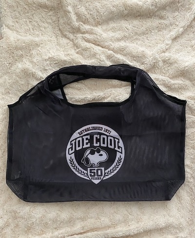 「JOE COOL 50周年!スヌーピー軽量マルシェバッグ」が「GLOW9月号」(宝島社)の時別付録に登場した。ブラックを基調としたメッシュ素材のマルシェバッグに「JOE COOL 50周年記念のアート」をプリントしたシンプルなデザインが特徴だ。
