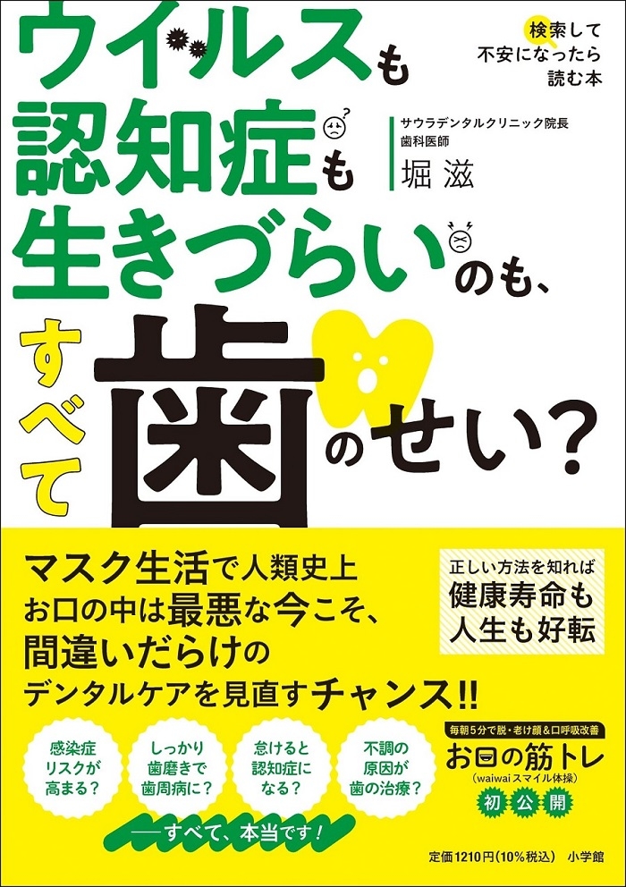 歯科医歴30年、サウラデンタルクリニックの堀滋さんの著書、『ウイルスも認知症も生きづらいのも、すべて歯のせい?』(小学館)には、そんな40~50代に向けて、間違いだらけのデンタルケアを見直し、正しい歯の知識を身につけるためのノウハウがまとめられている。