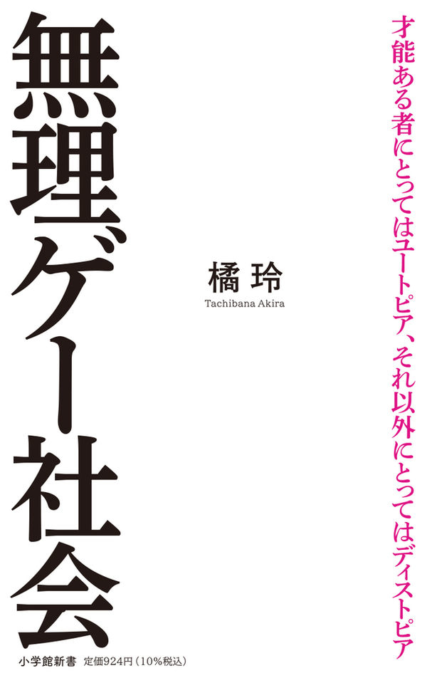 現代にはさまざまな不安や生きづらさがあり、個人の力でそれらに対処するのはもはや無理なのではないか。攻略が極めて困難なゲームを意味する「無理ゲー」という言葉を使って、現代はそんな「無理ゲー社会」であると指摘するのが、橘 玲さんの新著、『無理ゲー社会』(小学館)である。現代社会のリアルな分断の構図を描き、13万部を超えるベストセラーとなった『上級国民/下級国民』(小学館新書)の著者である。