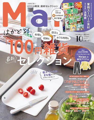今知りたいお得情報満載の「Mart10月号」(光文社)が8月27日に発売された。メイン特集は、「はかどる100円雑貨最新コレクション」である。