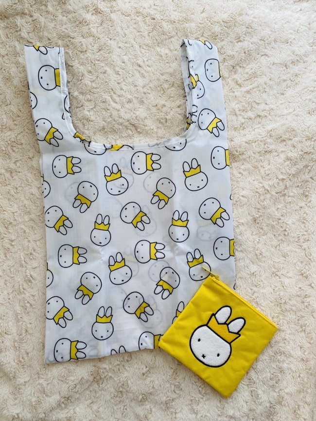 白を基調としたエコバッグに王冠をかぶったミッフィーが総柄プリントされている。北欧のセンス漂うシンプルで落ち着いたデザインなので、キャラクターアイテムを敬遠してしまう人も使いやすい。