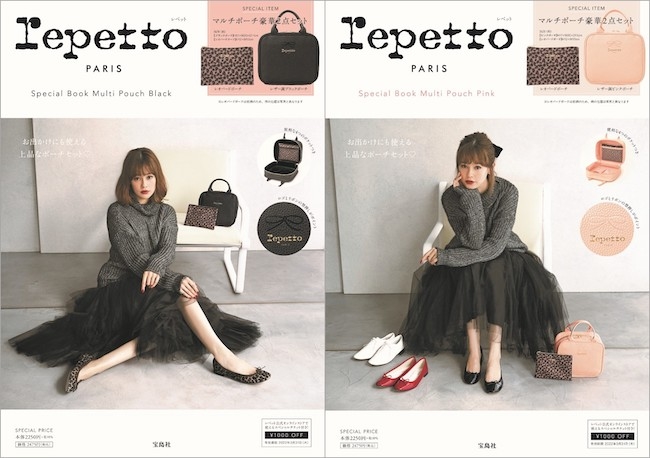 特別付録は、レペットの付録史上、最も豪華な仕上がりとなるマルチポーチとレオパード柄のミニポーチの2点セット。