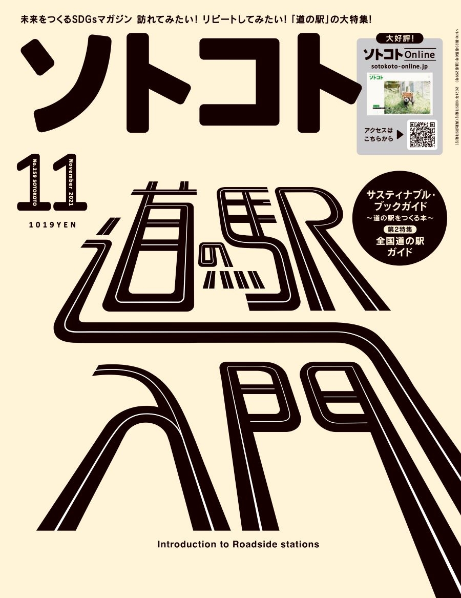10月5日発売の『ソトコト 2021年11月号「道の駅入門」』(ソトコト・プラネット)では、「道の駅入門」を特集している。休憩も買い物も楽しむことのできる道の駅はいま、全国にぐんと増えている。直売所やお土産、ユニークな建築など、見どころが満載だ。