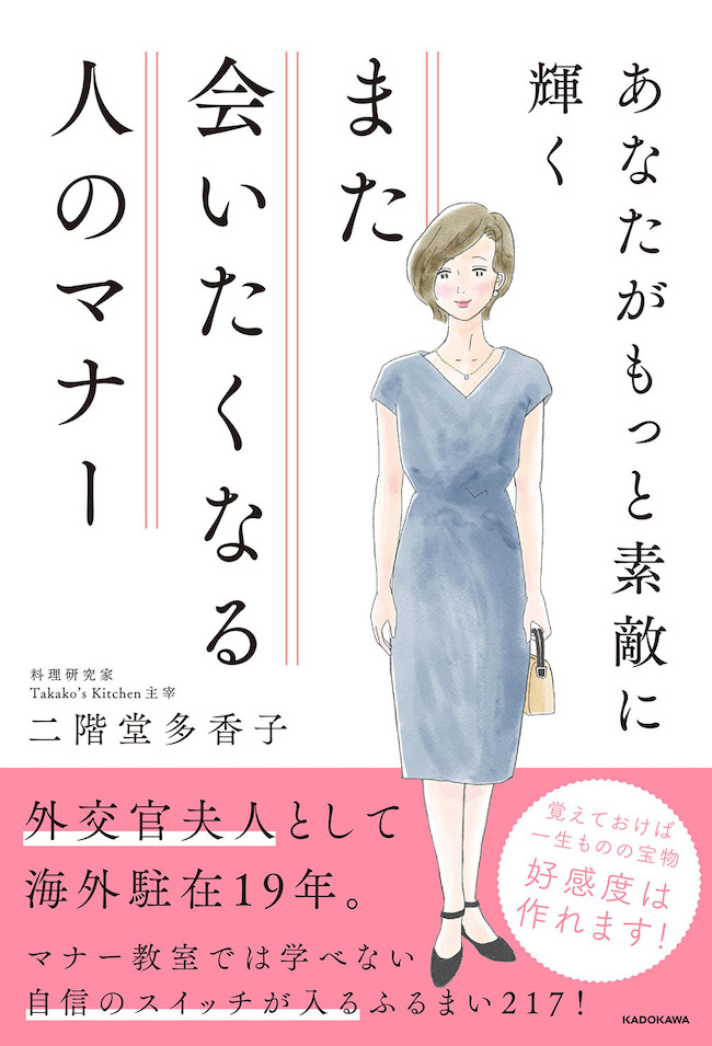 元外交官婦人として19年間海外に在住した二階堂多香子さんが身につけたグローバルなマナーを伝授する『あなたがもっと素敵に輝く また会いたくなる人のマナー』(KADOKAWA)が発売された。