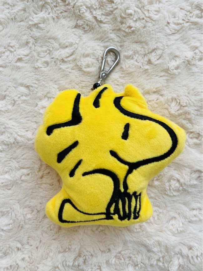 本アイテムは、カバンにつけているだけでハッピーになれるパワフルな黄色のぬいぐるみポーチだ。ちょこんと座るウッドストックがとても愛らしく、つい毎日のお出かけに連れて行きたくなる。