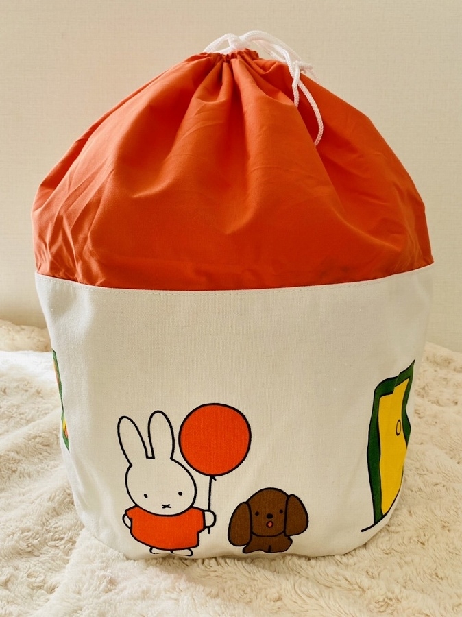 本アイテムは、ミッフィーの絵本の中に出てくるおうちをイメージした丸くて可愛い円筒状の収納袋である。