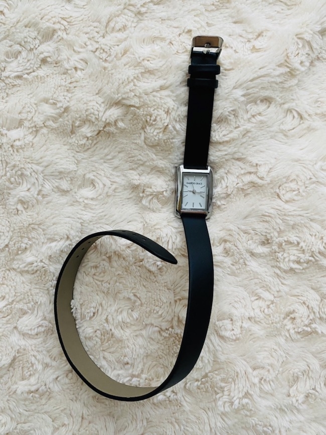 シックなシルバーのケースと、黒のベルトが大人のおしゃれを演出してくれるハリス グレースのアクセサリー腕時計で、毎日のファッションに上品さをプラスしよう。