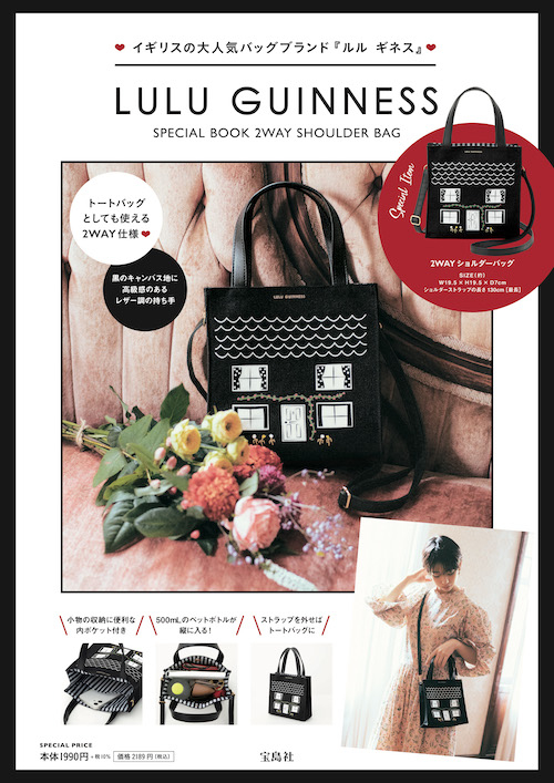 1989年に創立された英国バッグブランド「LULU GUINNESS(ルル ギネス)」から、日本再上陸を記念してスペシャルブック「LULU GUINNESS SPECIAL BOOK 2WAY SHOULDER BAG 」(宝島社)が10月22日に発売された。