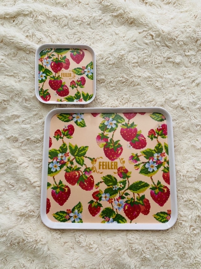 食品も載せられるFEILER(フェイラー)の「ストロベリーフィールド可憐なイチゴ柄トレー2枚セット」が「InRed 12月号増刊」(宝島社)の特別付録に登場した。