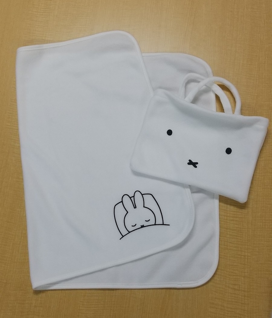 また、持ち運びしにくいブランケットを収納できるミッフィーのフェイストートバッグがセットになっている。サイズは(約)縦18cm×横25cmと、折りたたんだブランケットを収納できるジャストサイズだ。