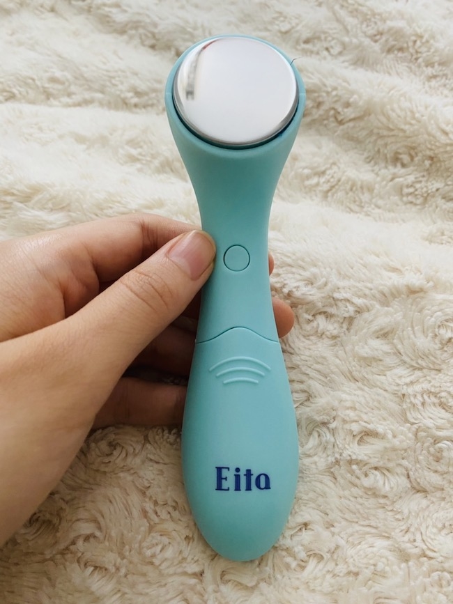 手にフィットする丁度良いサイズが使いやすい本アイテムは、ヘア&メイクアップアーティストのEitaさんとコラボレーションした限定の「素敵グランマのお手入れ美顔器」である。使っていると、気持ちまで軽やかになりそうな「みずいろ」カラーが印象的で、ヘッド側に「Eita」のロゴがプリントされたシンプルなデザインとなっている。