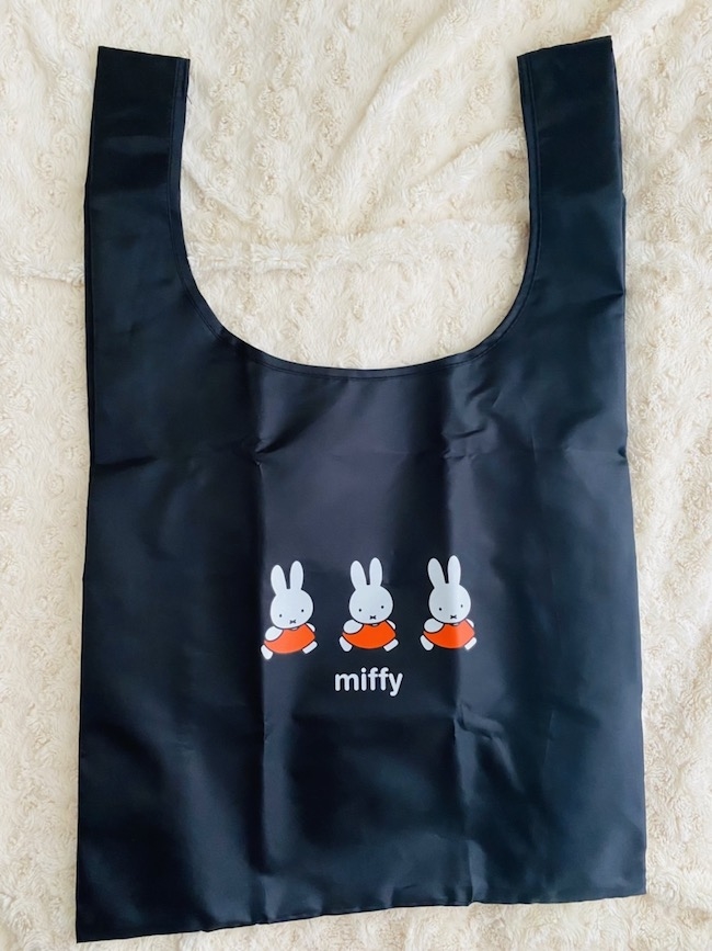 本アイテムは、ブラックをベースにしたシックなデザインで、センターにちょこんと収まっているオレンジ色の服を着たミッフィーが愛らしい。サイズは、縦38.5×横40×マチ14cmの大容量仕様なので、週末のまとめ買いにも、アウトドア利用にも最適である。さらに持ち手が長くて使い勝手が良いため、お買い物のマストアイテムになりそうだ。